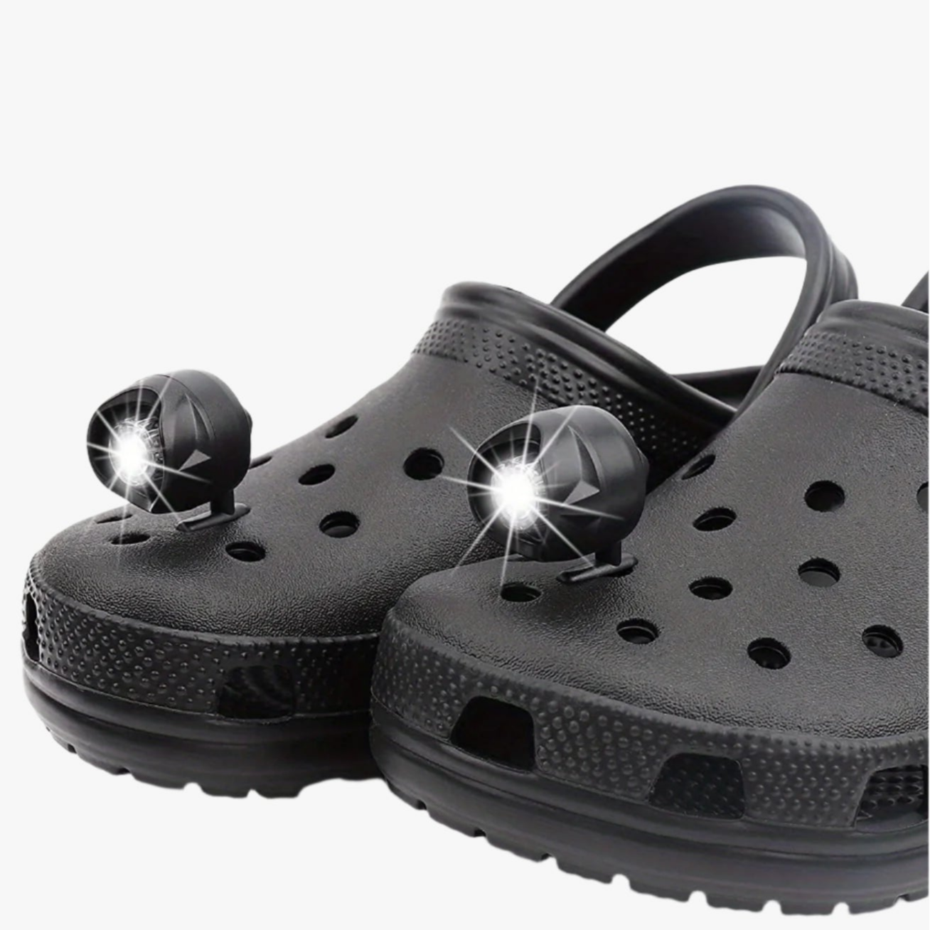 Light up your path with Clog Headlights, perfect for using your clogs at night. These durable and waterproof lights attach easily to the top of your clogs, ensuring visibility and safety in low-light conditions.