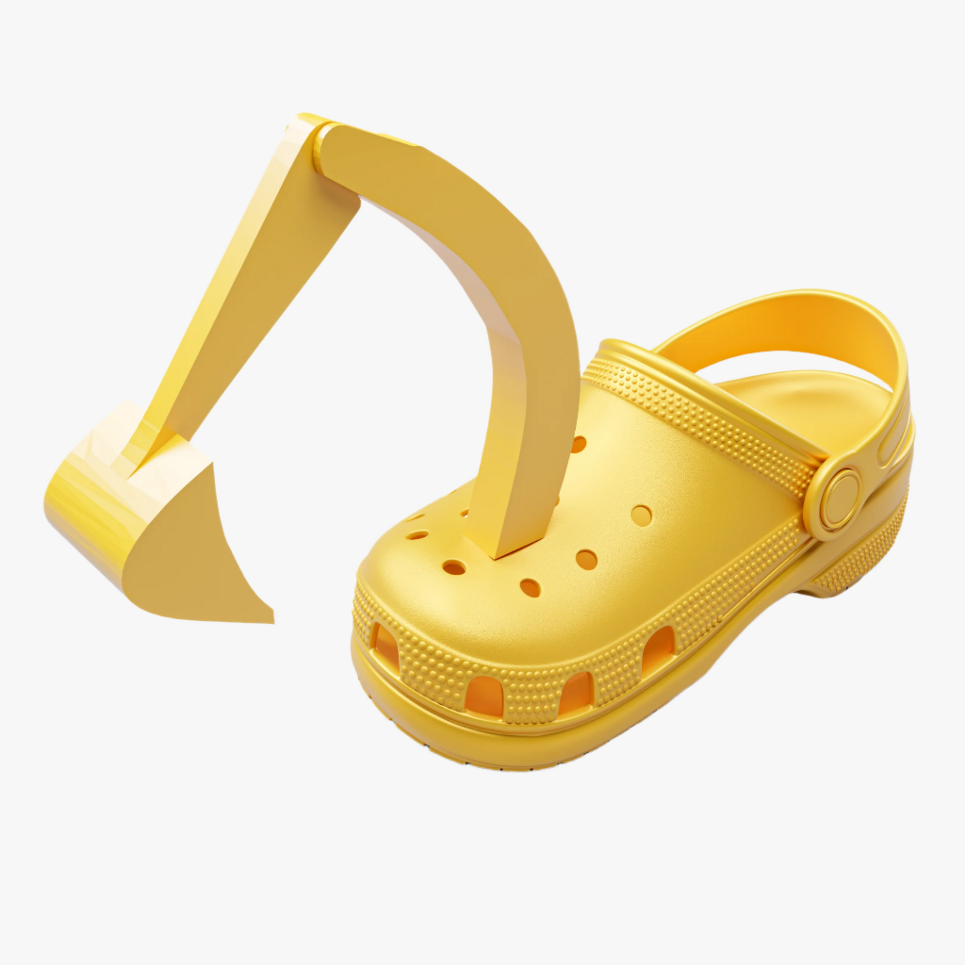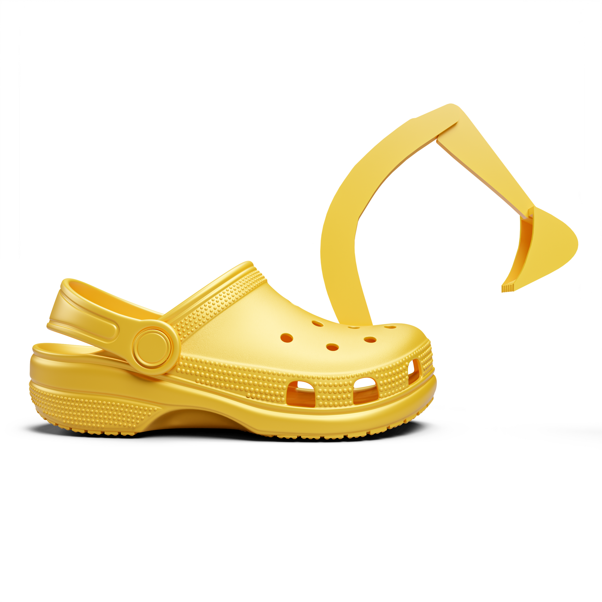 Introducing the Excavator Charm for Clogs: Upgrade your clogs with this unique 3D-printed charm, crafted in the USA. Designed to fit snugly in the top holes of your clogs, the excavator arm features a movable joint, adding interactive flair to your style.