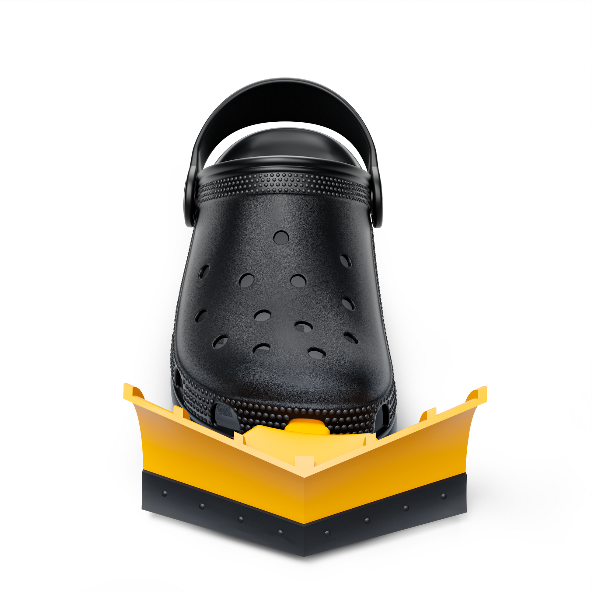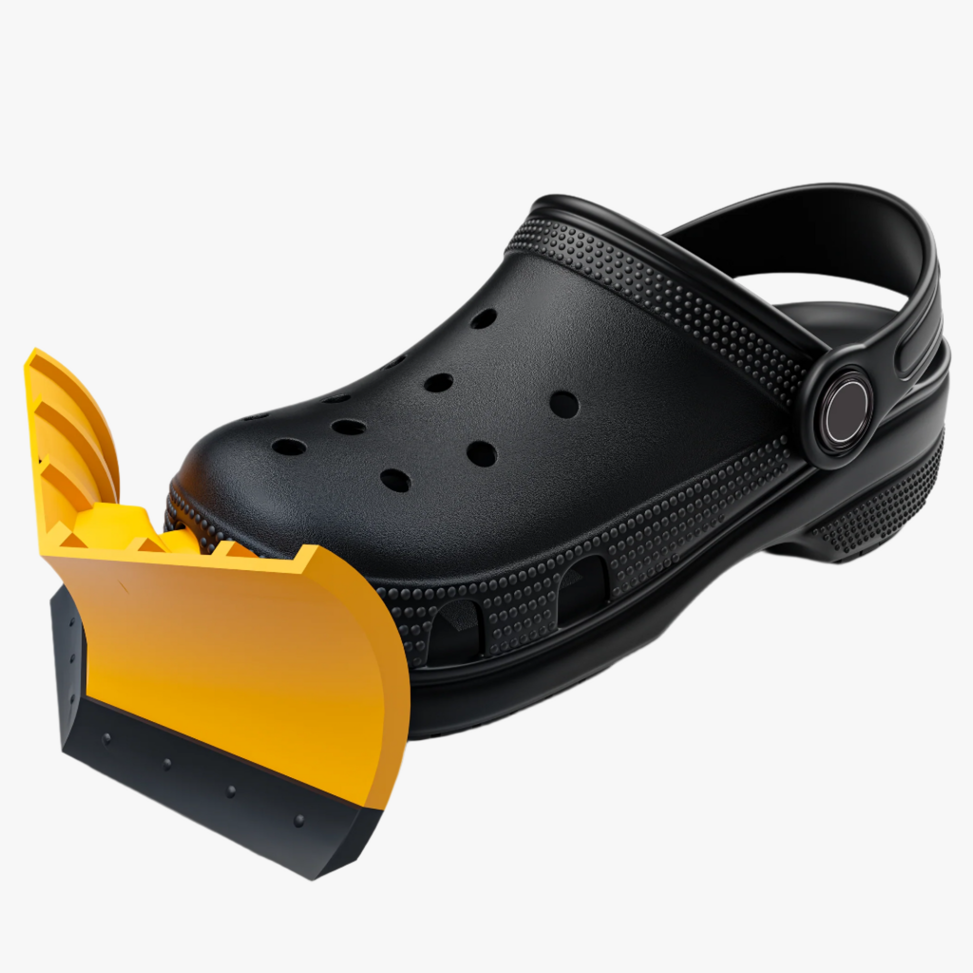 Get ready for winter with the ultimate upgrade for your clogs! Our V-Plow attachment is designed to fit perfectly into the front hole of your favorite clogs, allowing you to easily clear snow from driveways and sidewalks. Crafted from durable, 3D-printed material, this black and yellow V-Plow is built to handle tough winter conditions, all while looking sleek.